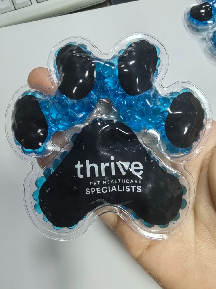 Simply microwave for warm therapy or freeze for cold therapy, Puppy Paw Aqua Pearls hot/cold packs are CPSIA and Prop65 Compliant, FDA Certified and TRA tested. Reusable and easily cleaned with mild soap and water. Come in orange and blue with instructions printed on back.