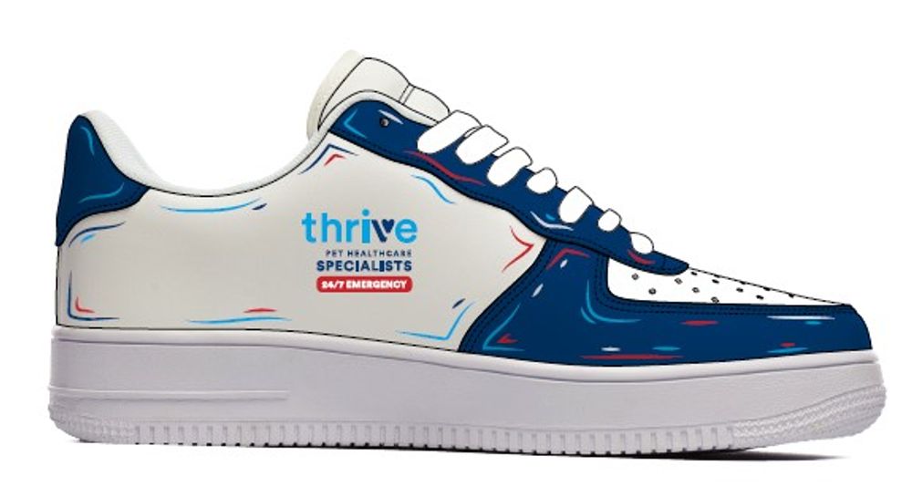 If you want to customize with a different logo other than Thrive let us know. matty@gapadvertising.com. We will custom design the sneakers for you and send you a mock-up.